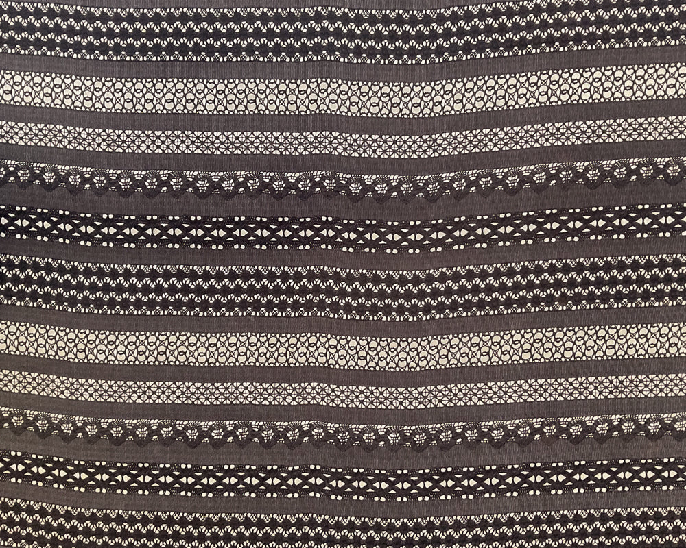 5 YD PC-Black-Ivory Multi Design Stripe Silk Designer Remnant Fabric