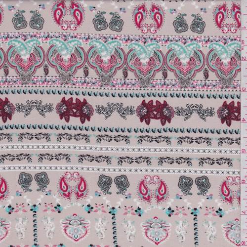 1 1/4 YD PC-Beige/Mint Novelty Stripe Rayon Challis Fabric