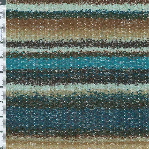1 3/4 YD PC-Blue/Beige Multi Printed Stripe Lacy Poly Knit Fabric