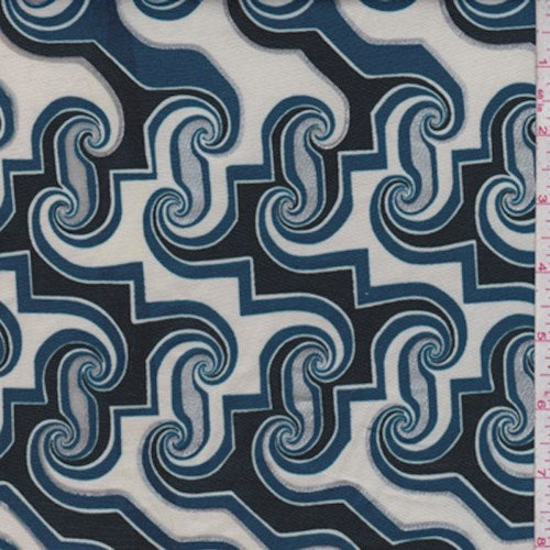 1 3/4 YD PC-Ivory/Teal/Spruce Scroll Activewear/Swimwear Fabric