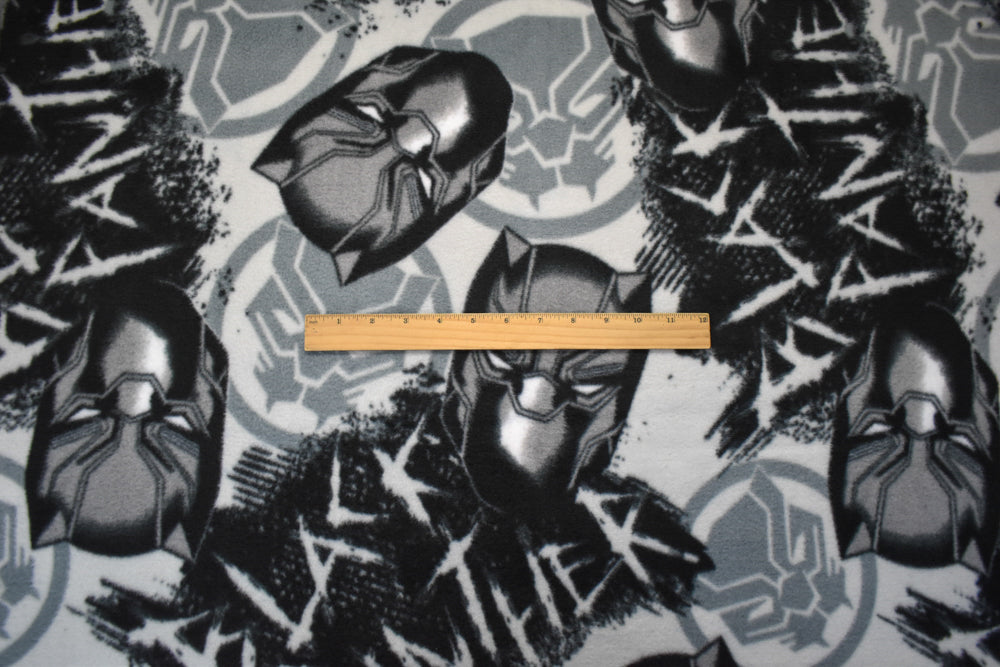 1 3/8 YD PC-Gray-Multi Poly Marvel Black Panther Print Double Sided Fleece Knit Fabric
