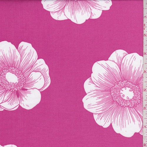 1 YD PC-Hot Pink Floral Bloom Brushed Jersey Knit Fabric