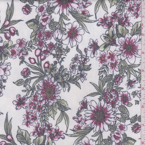 1 YD PC-Ivory/Wine Floral Brushed French Terry Knit Fabric
