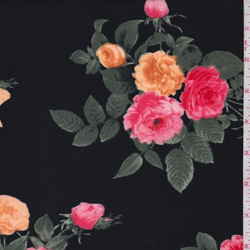 2 1/4 YD PC-Black/Apricot Rose Cluster Scuba Knit Fabric