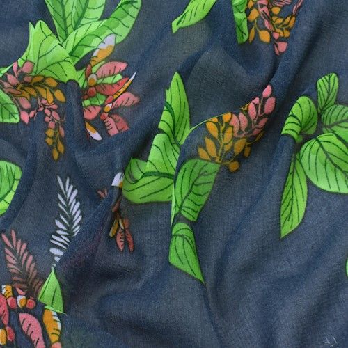 2 1/4 YD PC-Ocean Blue/Green Leaf Printed Chiffon Fabric