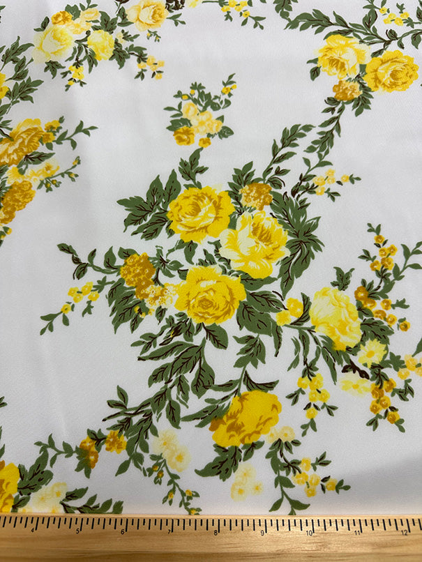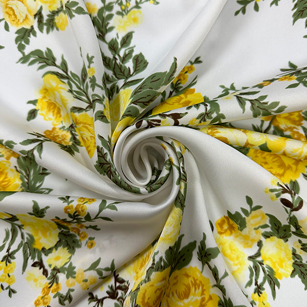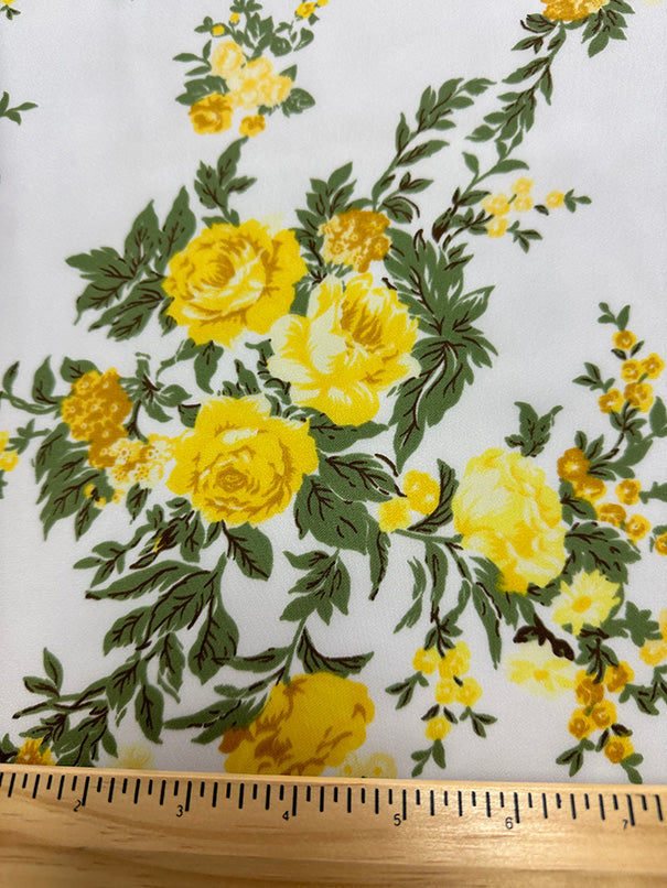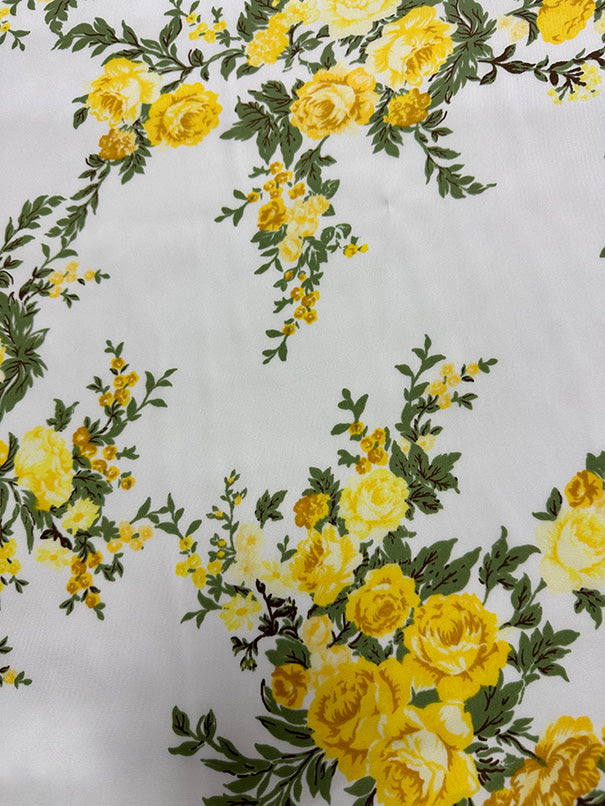 2 1/8 YD PC-Yellow Roses Print Poly Charmeuse Satin Fabric