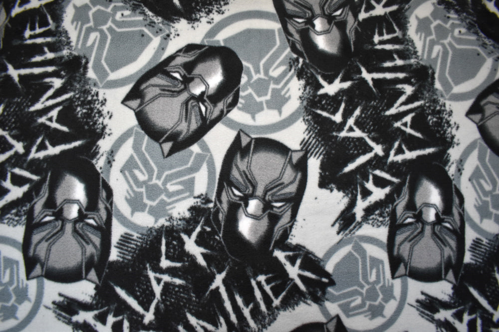 2 7/8 YD PC-Gray-Multi Poly Marvel Black Panther Print Double Sided Fleece Knit Fabric
