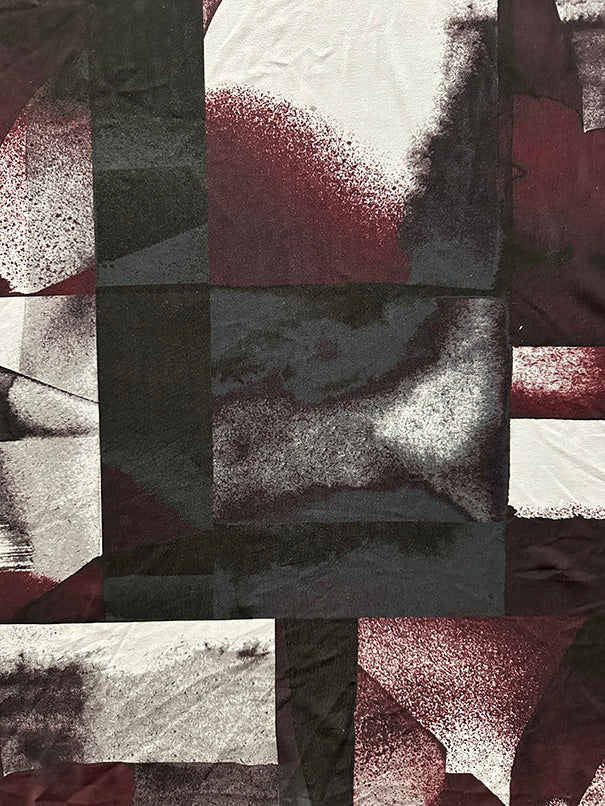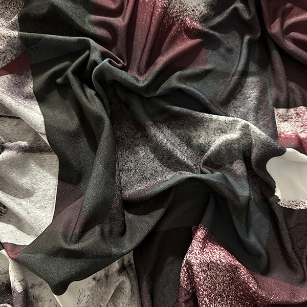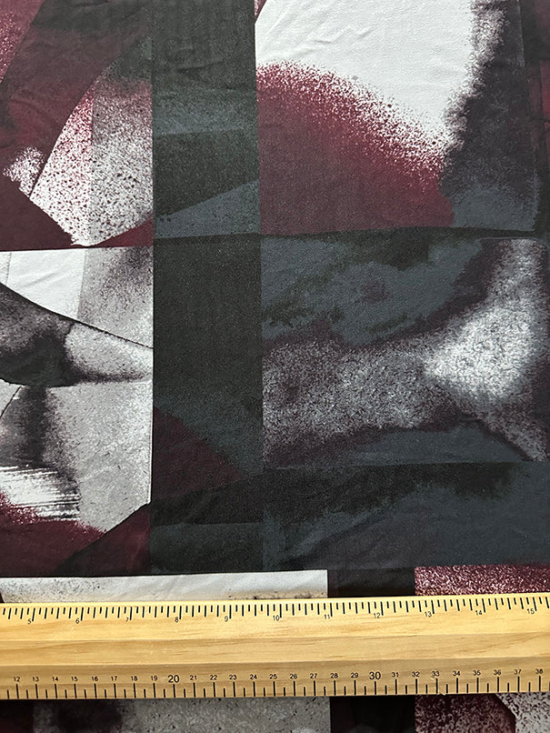 2 YD PC -Burgundy Red, Black, & Gray Abstract Print ITY Jersey Knit Fabric