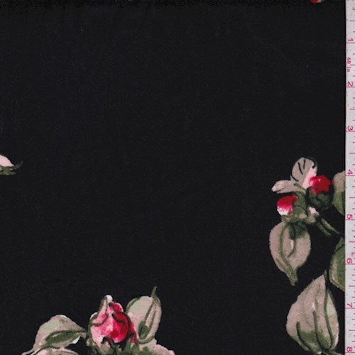2 YD PC-Black/Pink Fan Floral Double Brushed Jersey Knit Fabric