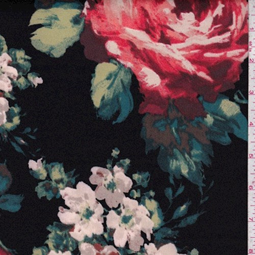 2 YD PC-Black/Taupe/Coral Multi Floral Scuba Knit Fabric