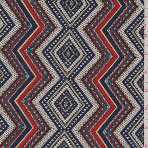 3 1/2 YD PC-Ivory/Fire/Navy Zig Zag Crepe Knit Fabric