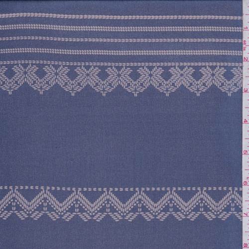 3 1/4 YD PC-Denim Blue/Taupe Stitch Silk Chiffon Fabric