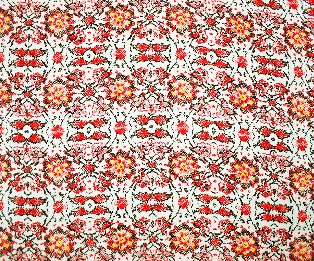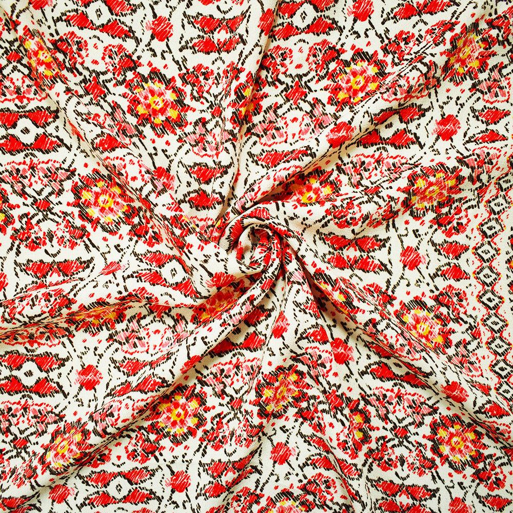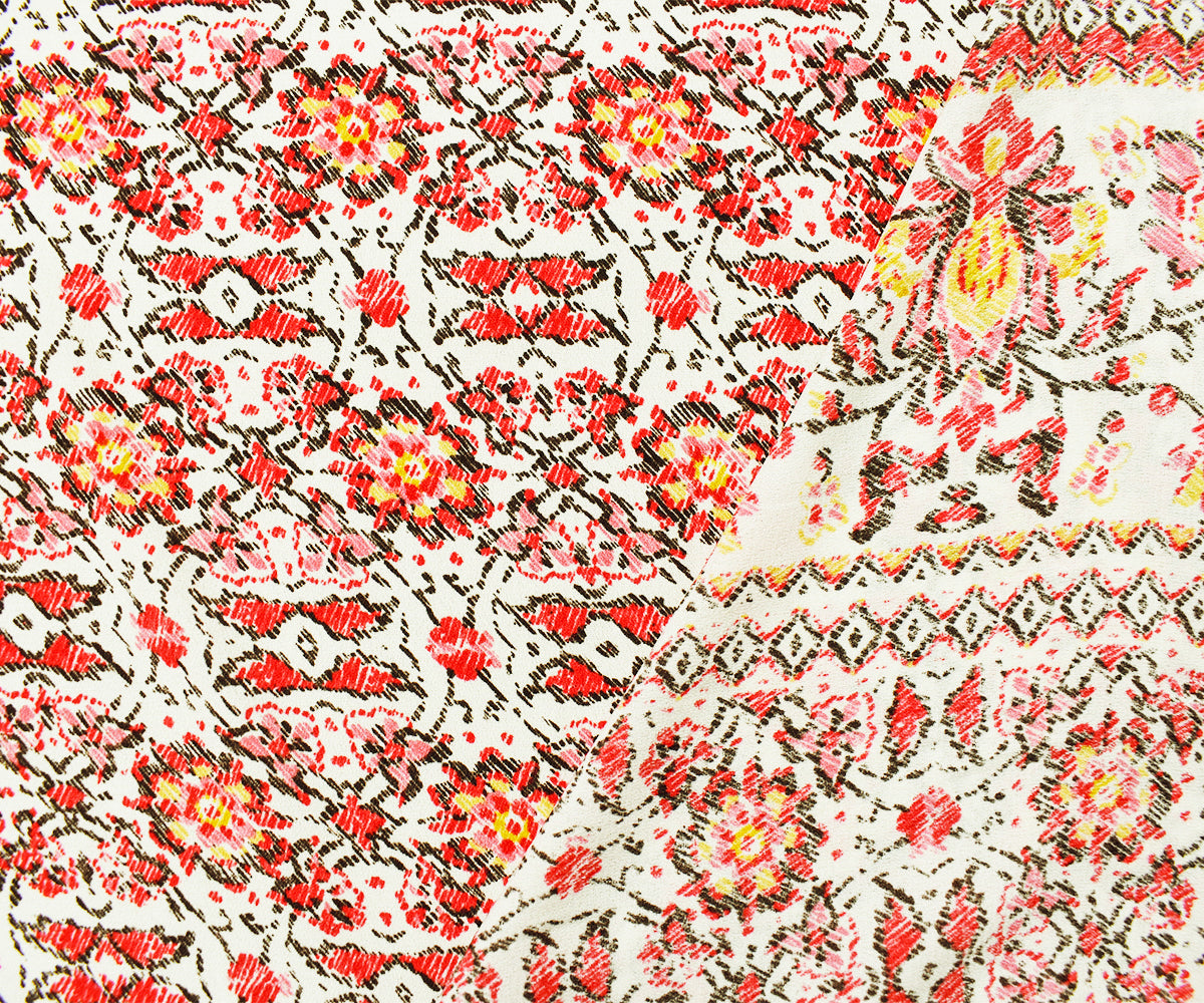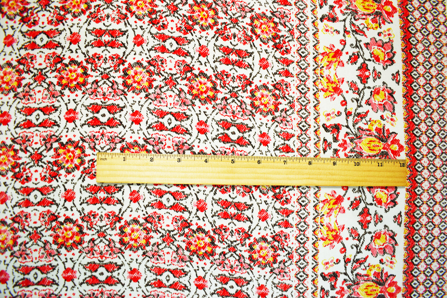 3 5/8 YD PC-Red-Brown-Multi Poly Floral Trellis Border Pattern Print Crepe Woven Fabric