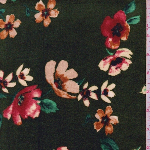 3 YD PC-Forest/Berry Cosmo Floral Panne Velvet Knit Fabric