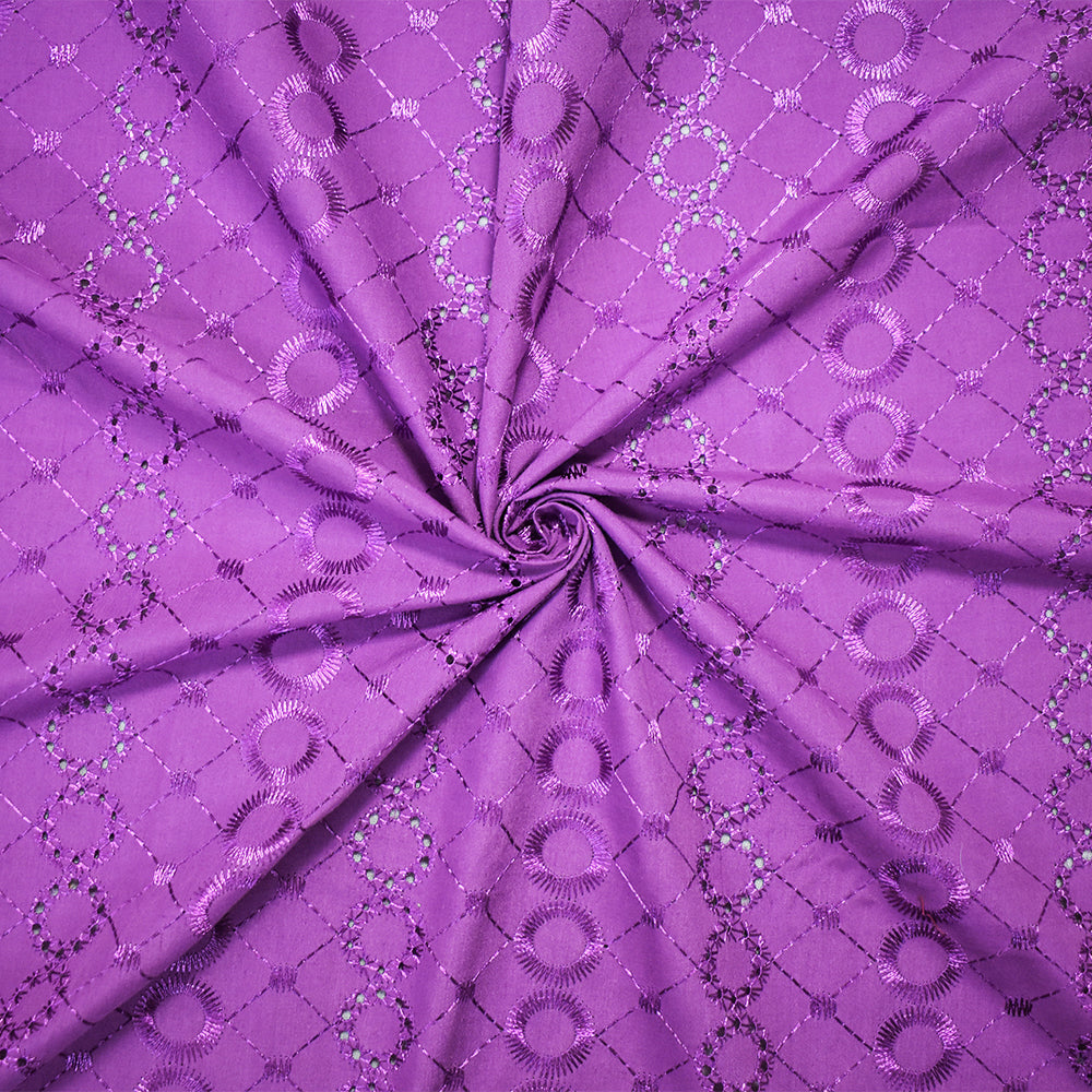 3 YD PC-Purple Poly-Cotton Embroidered Circle Diamond Scallop Eyelet Woven Fabric