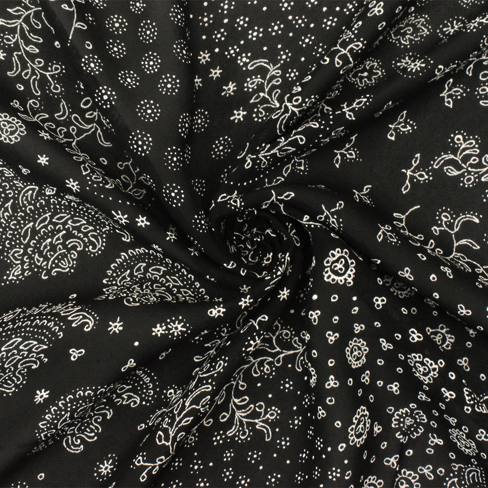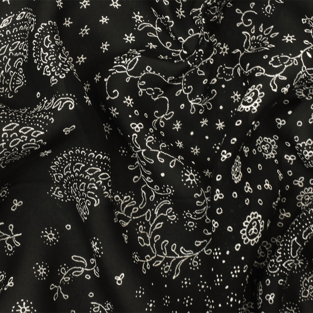 4 YD PC-Black-Ivory Famous Designer Rayon Fancy Paisley Printed Chiffon Fabric