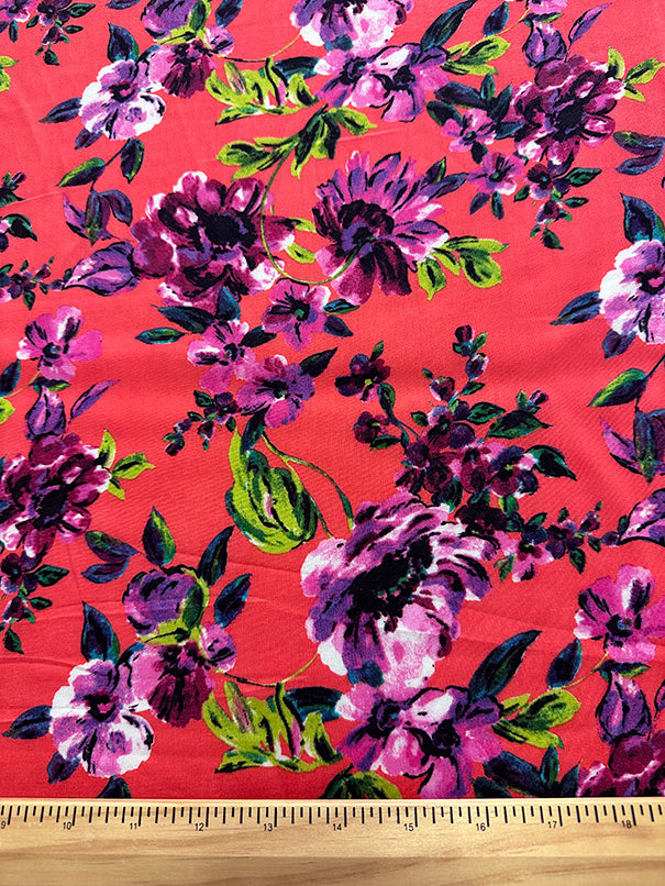 4 YD PC-Dark Coral Multi Floral Print Rayon Challis Fabric
