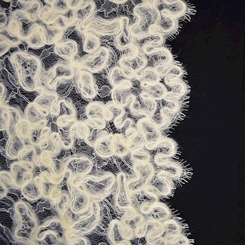 -This beautiful mohair lace fabric is woven using traditional techniques on a Leavers loom in France.