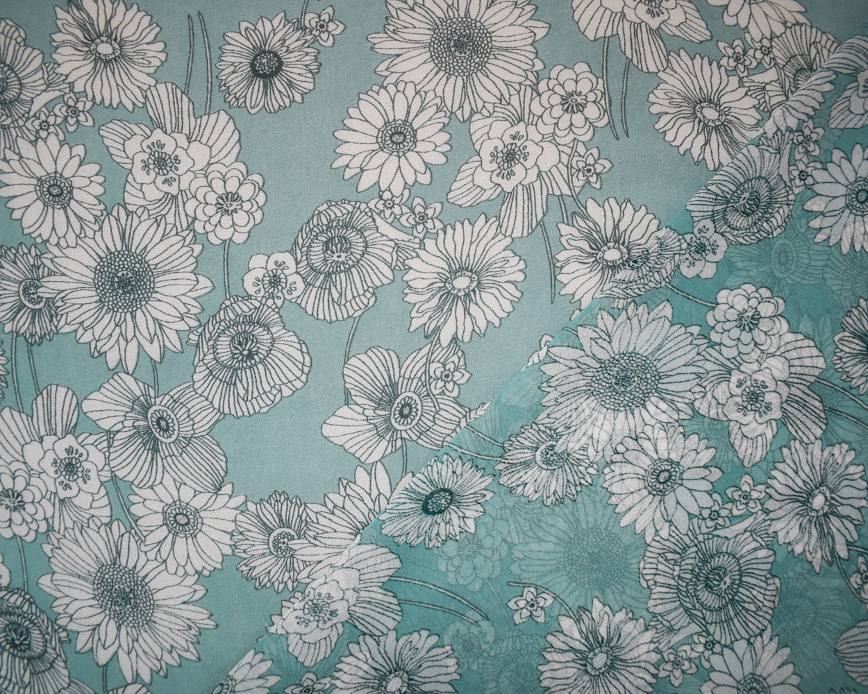 1 1/2 YD PC-Turquoise-White Poly Floral Printed Pebble Chiffon Woven Fabric