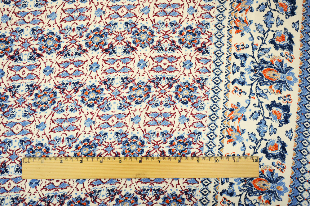 1 YD PC-Blue-Maroon-Multi Floral Border Printed Poly Crepe Momie Georgette Fabric