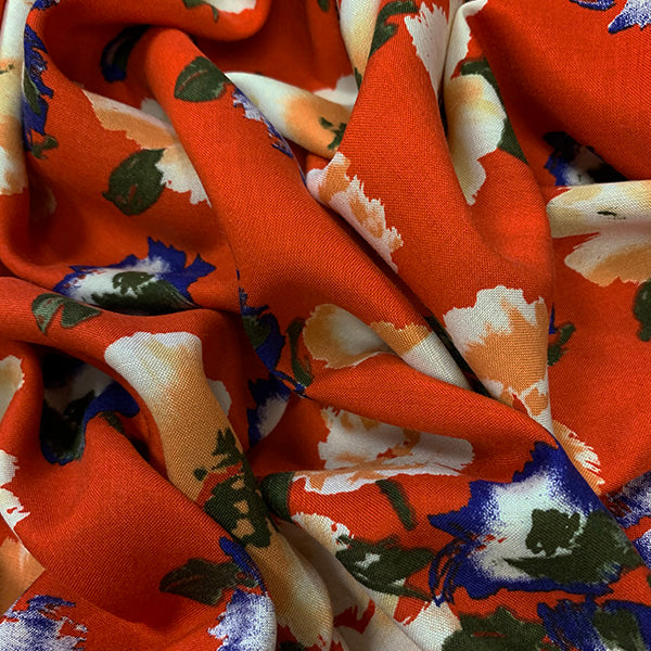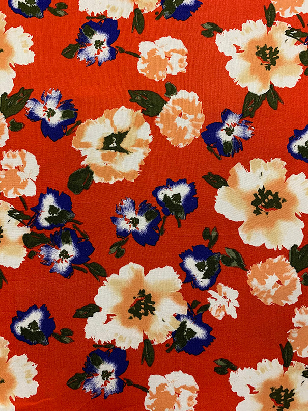 1 YD PC-Orange and Blue Floral Print Rayon Challis Fabric