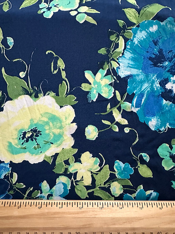 2 3/4 YD PC-Green Multi Floral Print ITY Jersey Knit Fabric