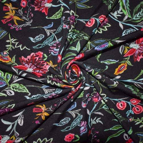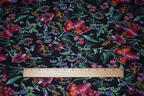 4 7/8 YD PC-Hot Pink/Green/Black/Multi Floral Printed Rayon Jersey Knit Fabric