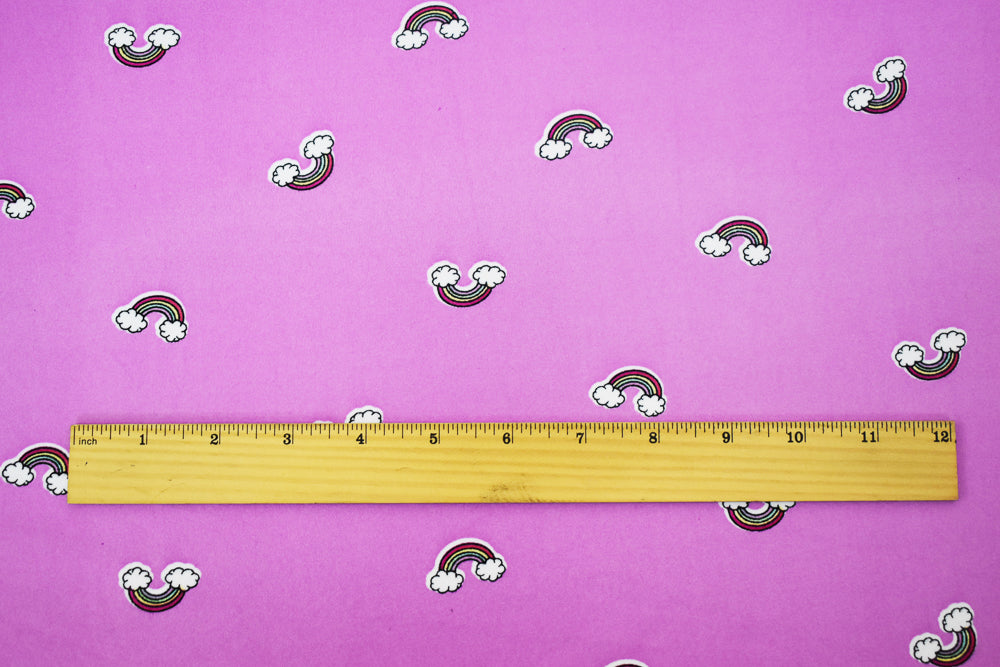 4 YD PC-Purple-Multi Rainbow Printed Poly Stretch Double Brushed Jersey Knit Fabric