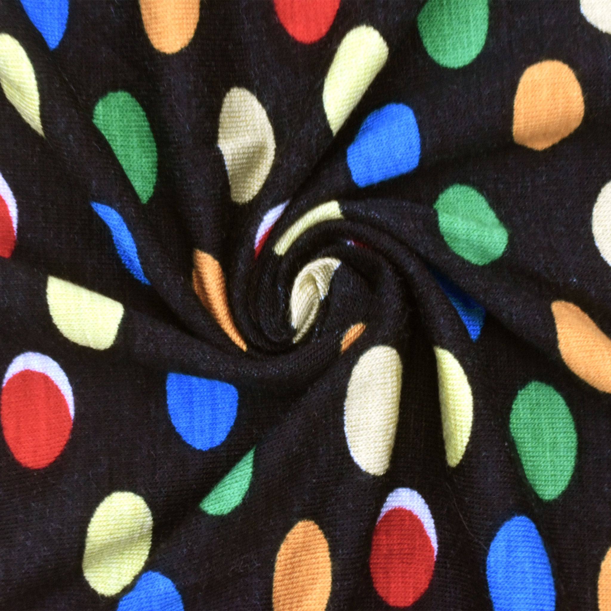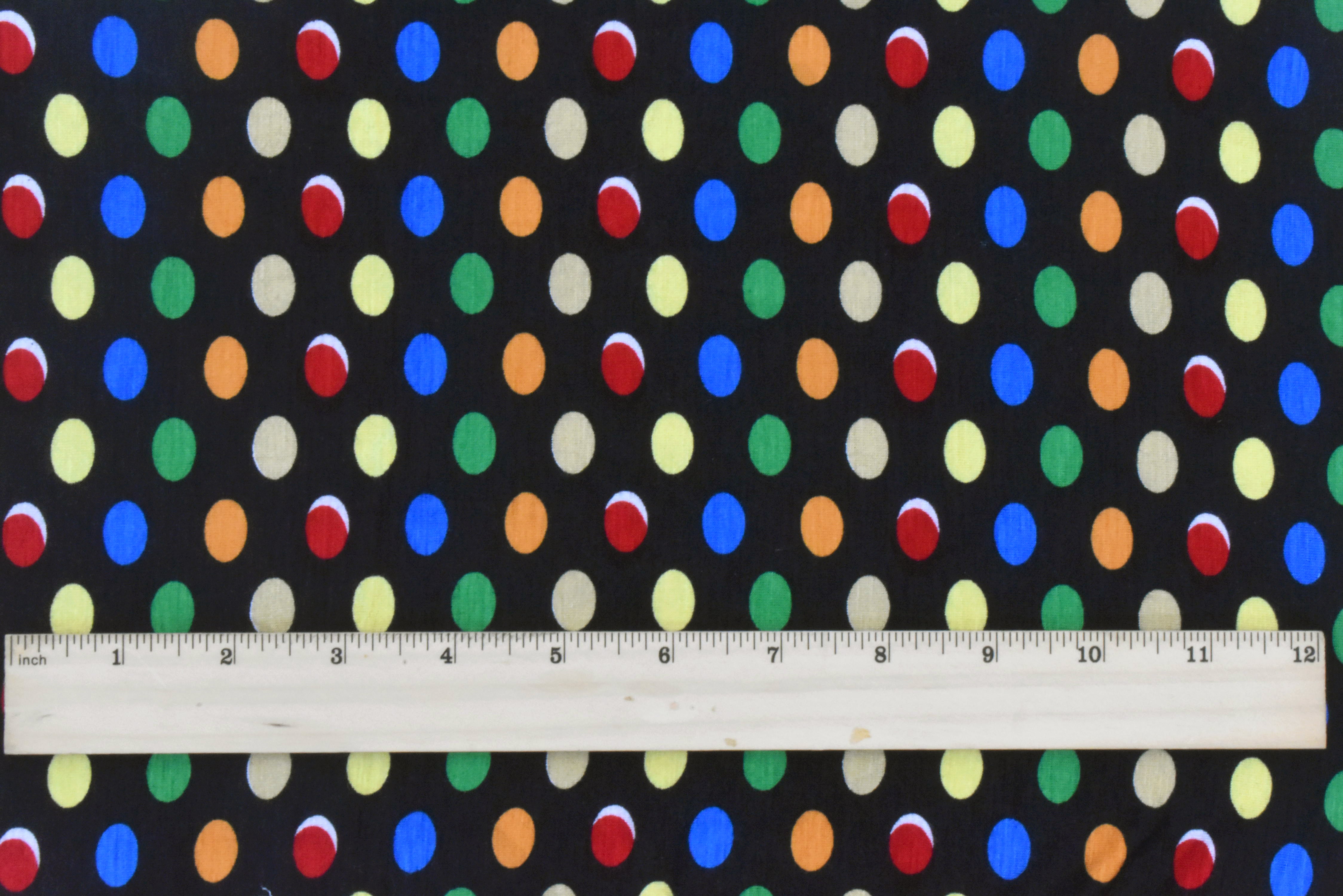 2 1/2 YD PC-Pitch Black-Multi Dot Printed Stretch Jersey Knit Fabric