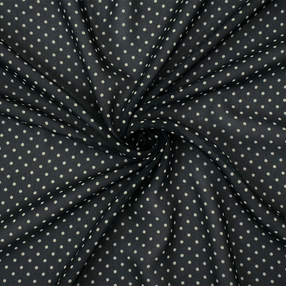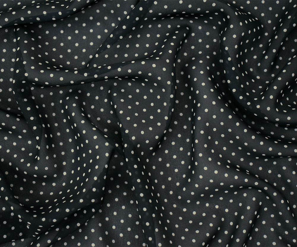 Black-Beige Polka Dots Printed Poly Chiffon Woven Fabric