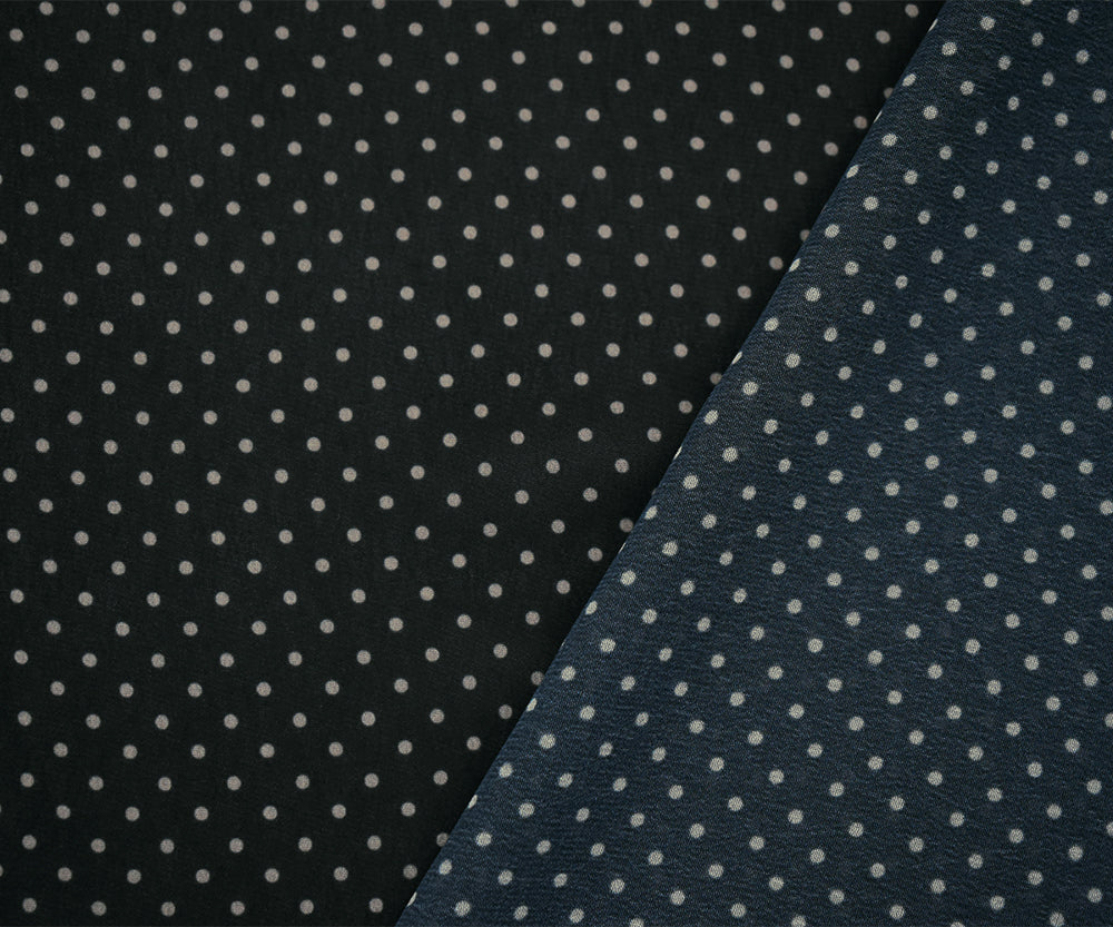 -100% polyester chiffon printed with polka dots. Made in Japan.