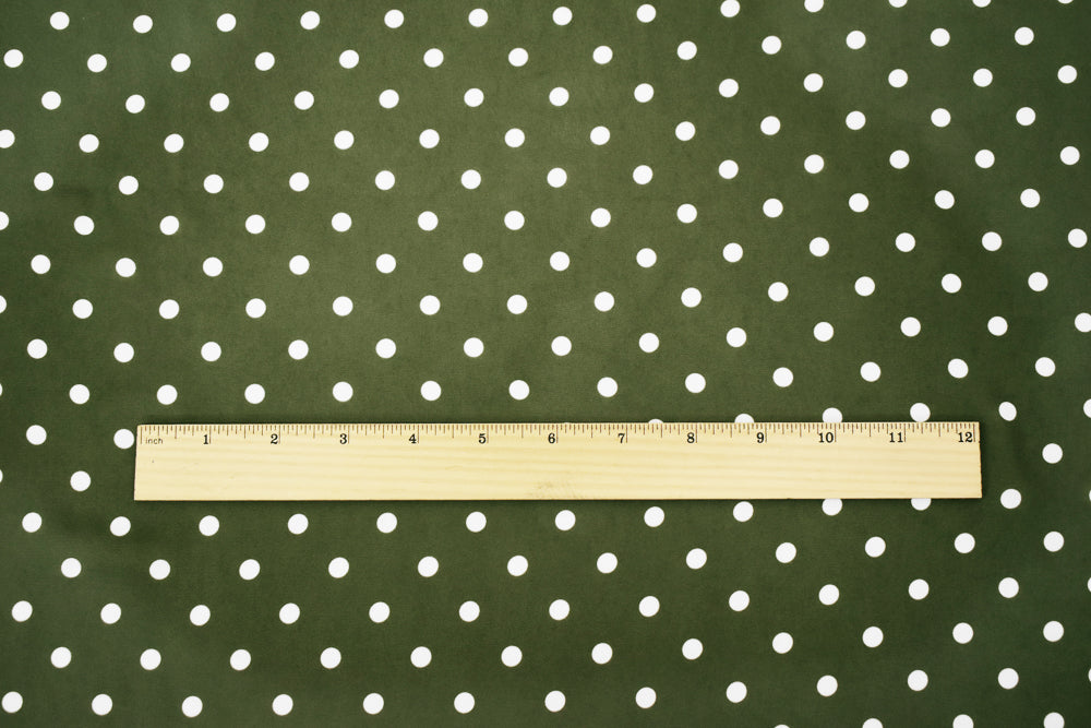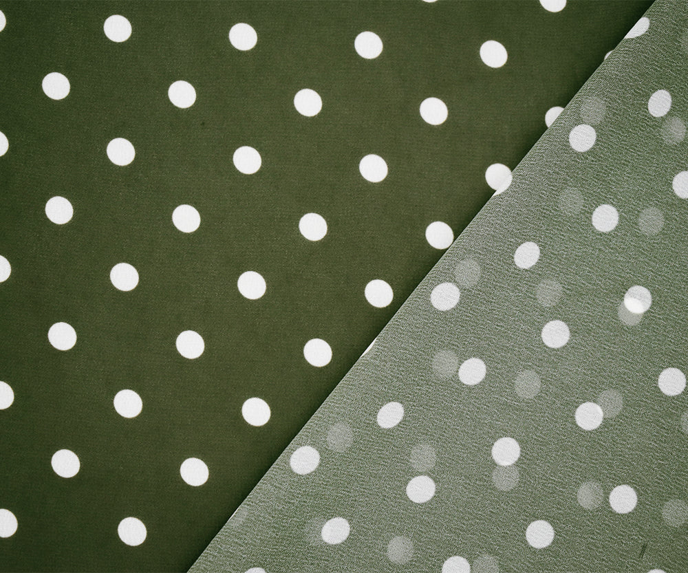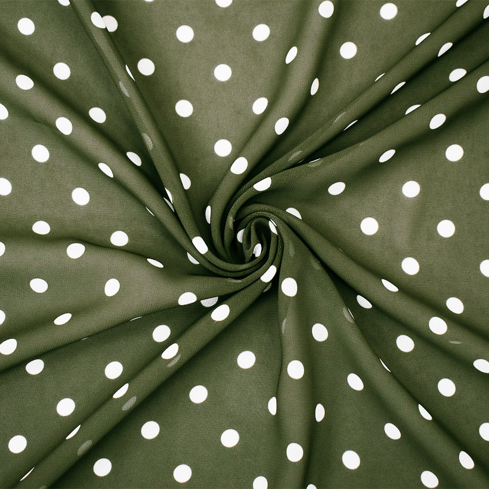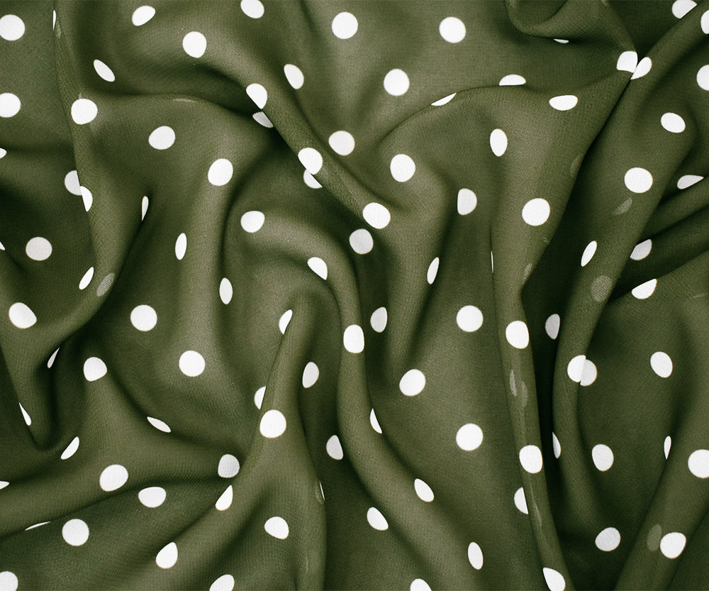 Green-White Polka Dots Printed Poly Chiffon Woven Fabric