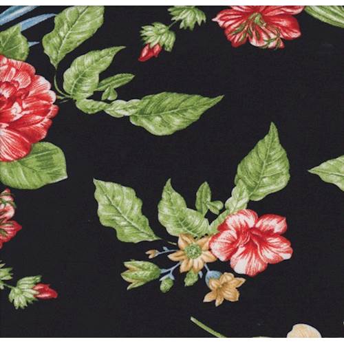 Black/Orange Floral Sprig Double Brushed Jersey Knit Fabric