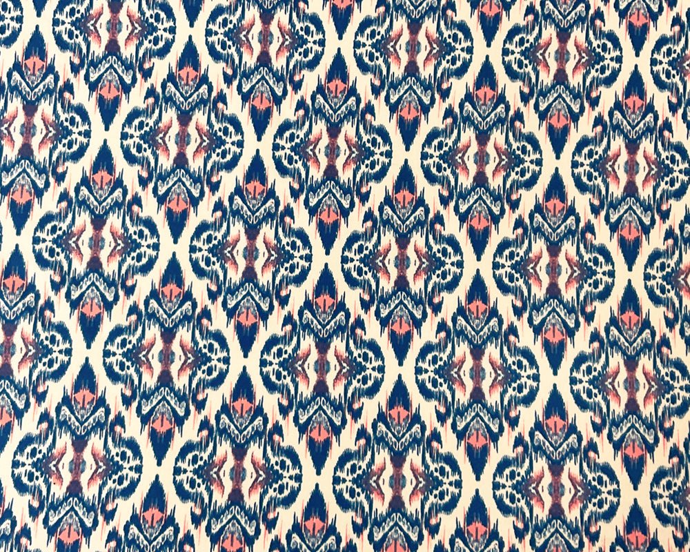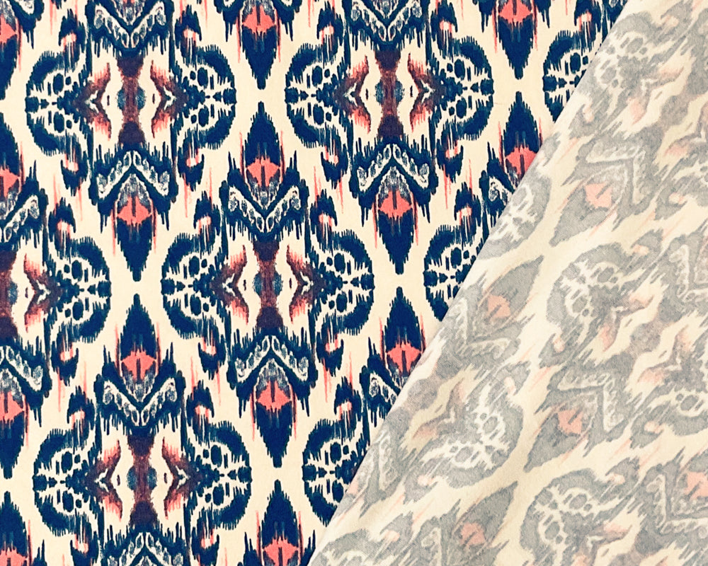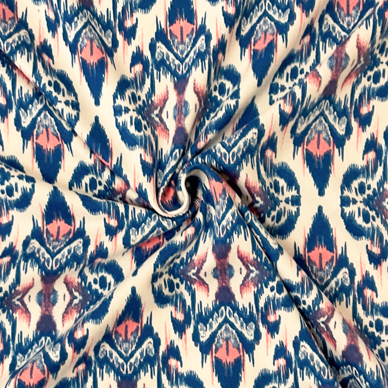 Blue-Multi Poly Stretch Ikat Print DB Jersey Knit Fabric