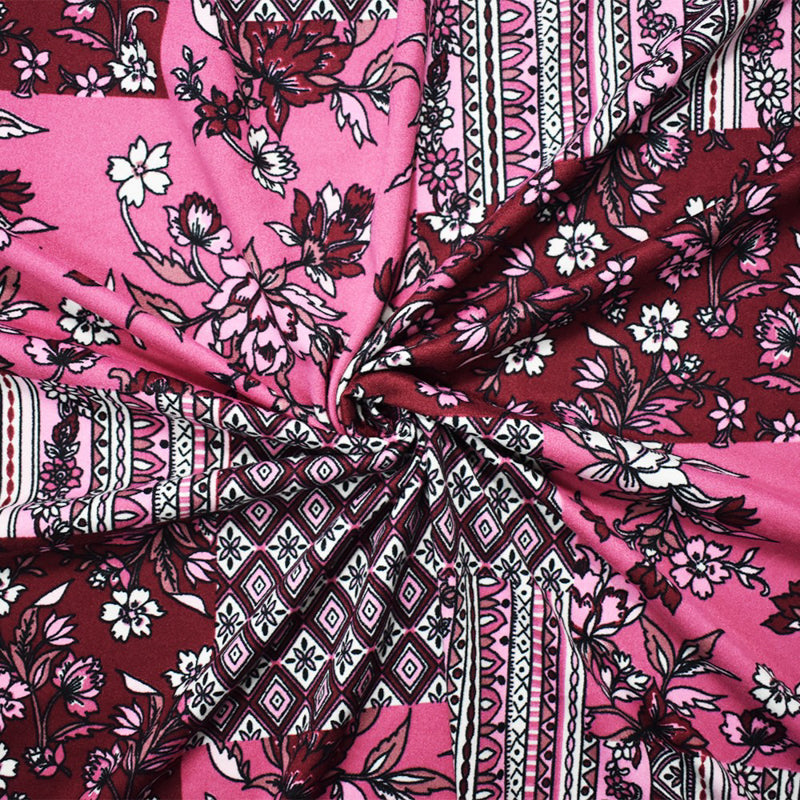 Pink-Multi Poly Stretch Floral Print DB Jersey Knit Fabric