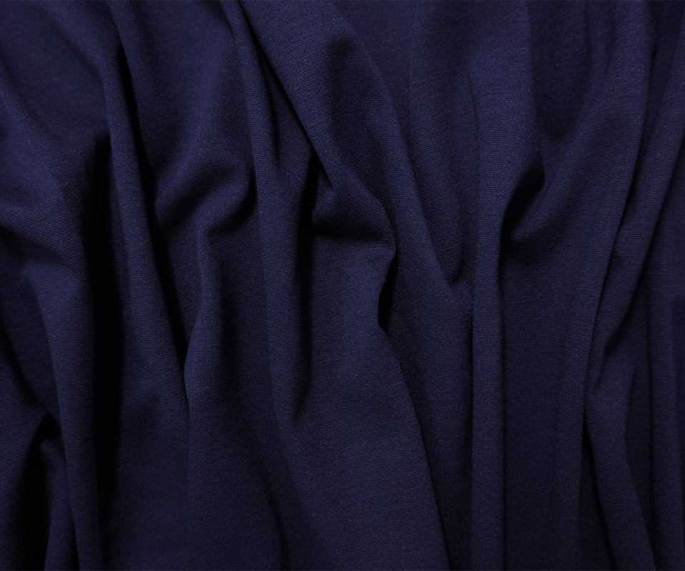 Deep Blue Nylon Blend Stretch Solid Ponte De Roma Double Knit Fabric