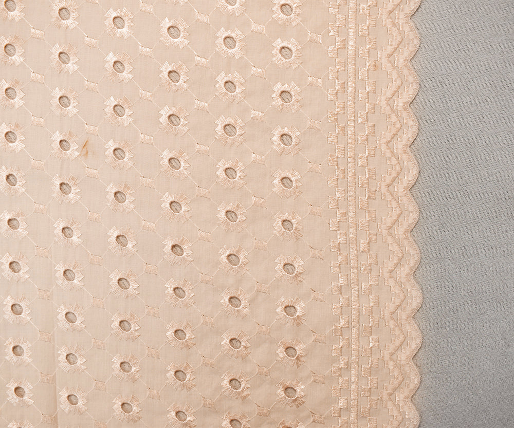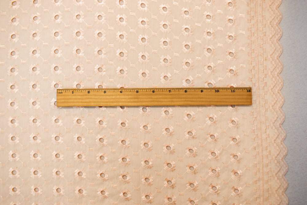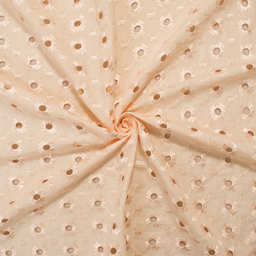 Beige Poly-Cotton Embroidered Abstract Pixel Eyelet Scallop Woven Fabric