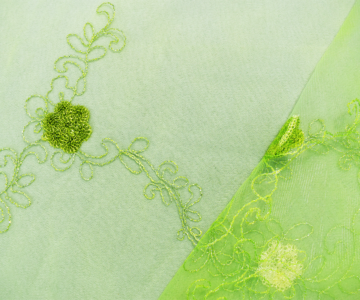 Green-Silver-Ivory Nylon Metallic Floral Embroidery Scallop Mesh Tulle Fabric