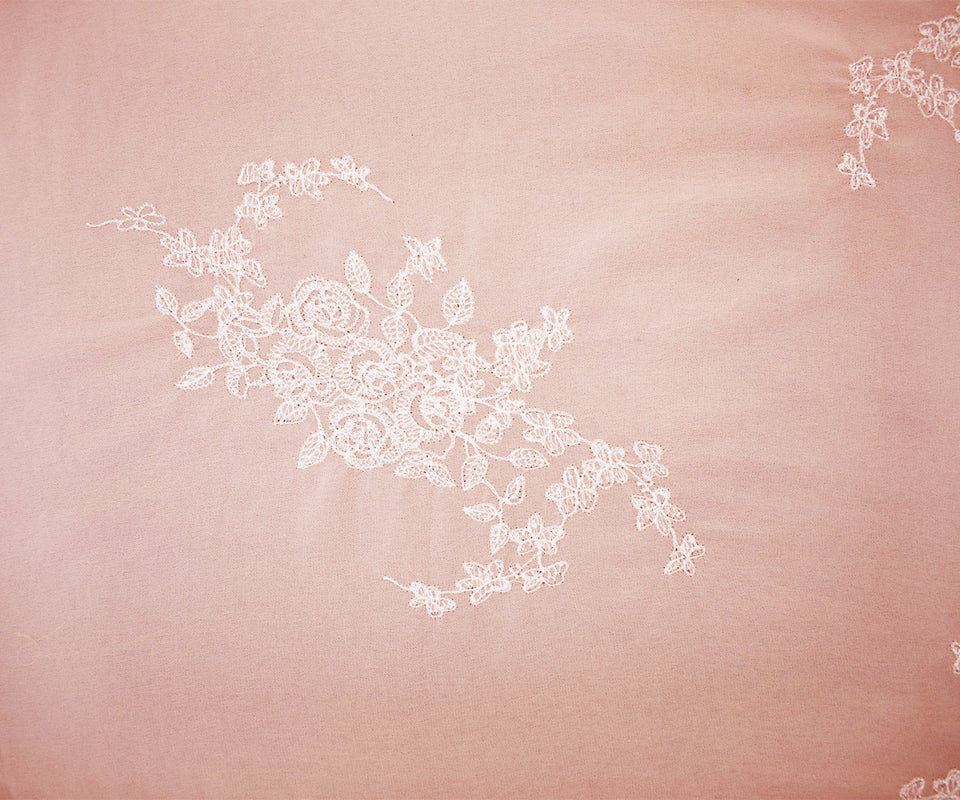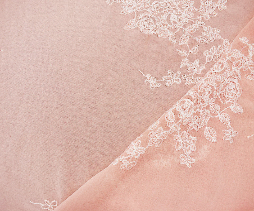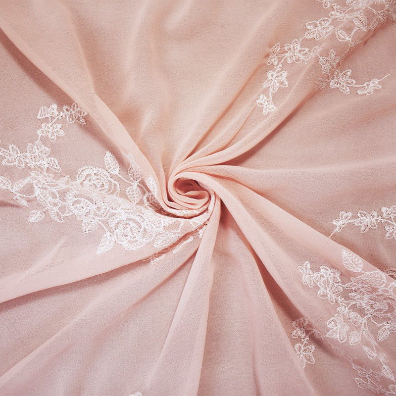 Pink-White Poly Floral Embroidered Chiffon Woven Fabric