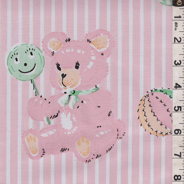 Baby Print on Pink & White Stripe Print Oilcloth Fabric