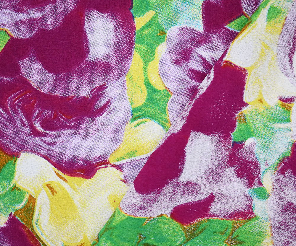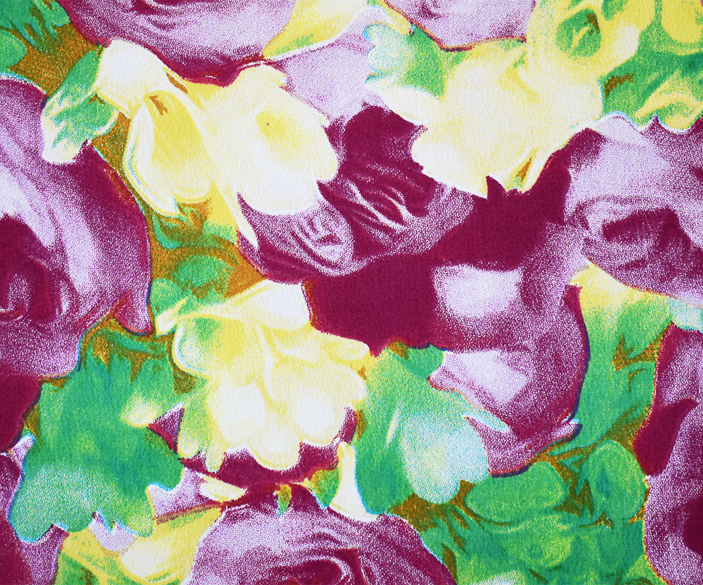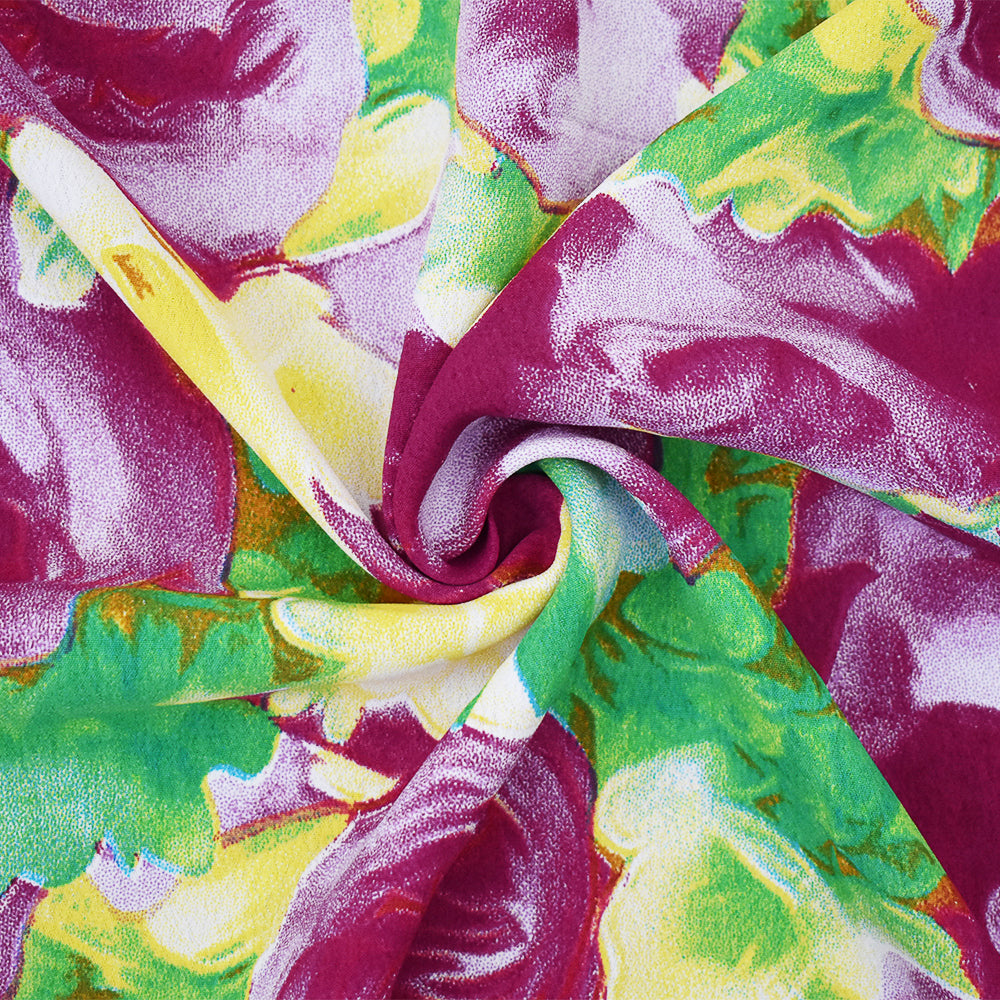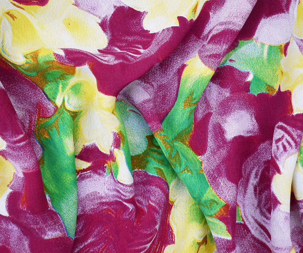 Fuchsia Pink-Yellow-Multi Floral Printed Rayon Crepe Faille Woven Fabric