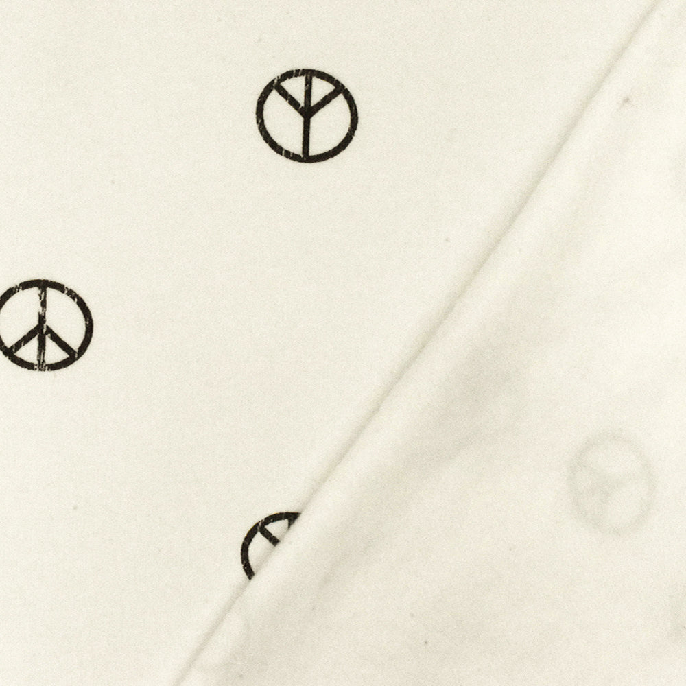 Ivory-Black Peace Printed Stretch Cotton French Terry Brush Fleece Fabric