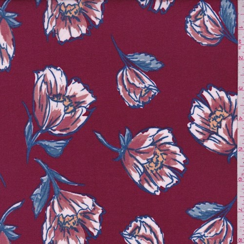 2 1/2 YD PC-Cranberry Fringe Floral Double Brushed Jersey Knit Fabric