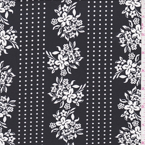 2 YD PC-ITY Black/White Floral Stripe Nylon Jersey Knit Fabric