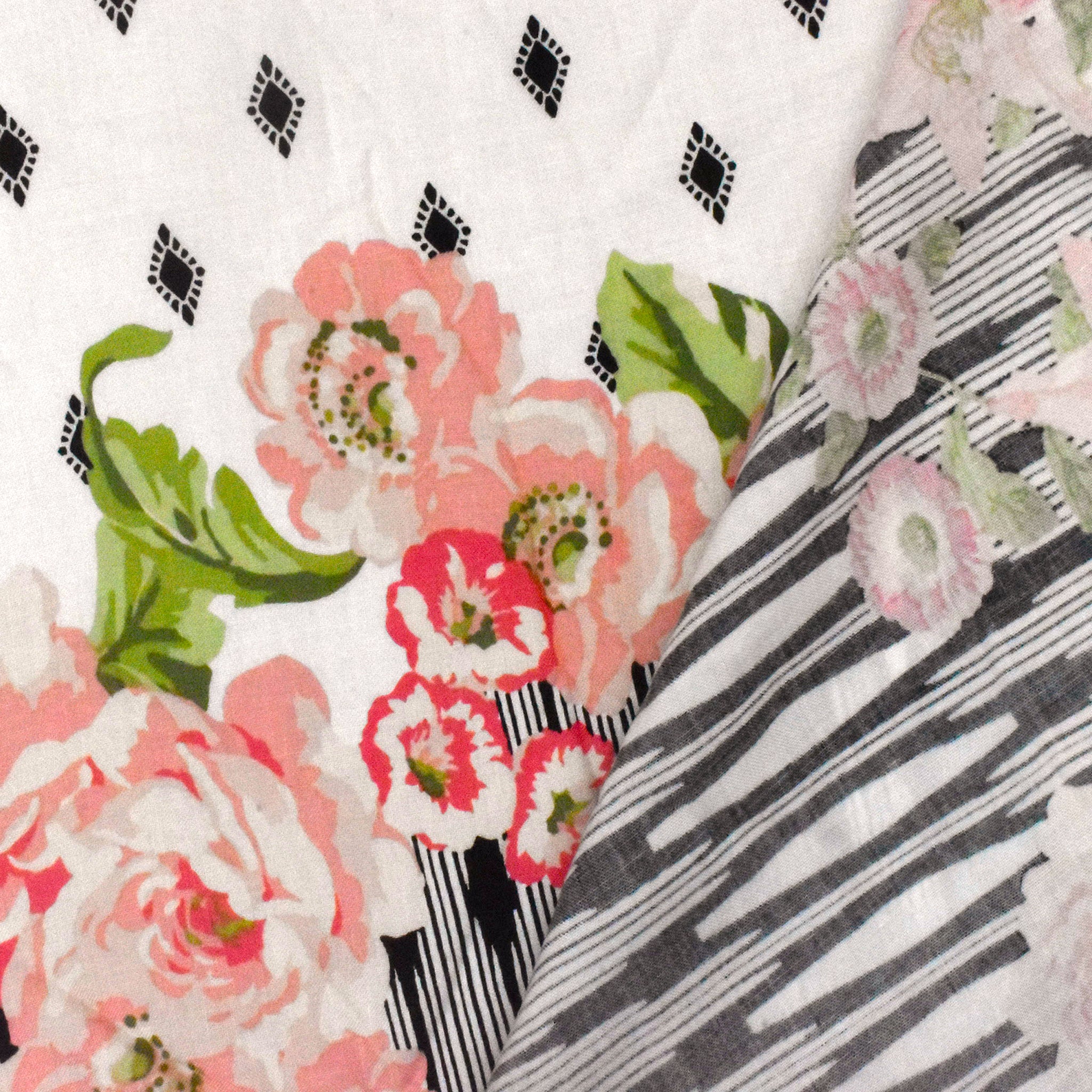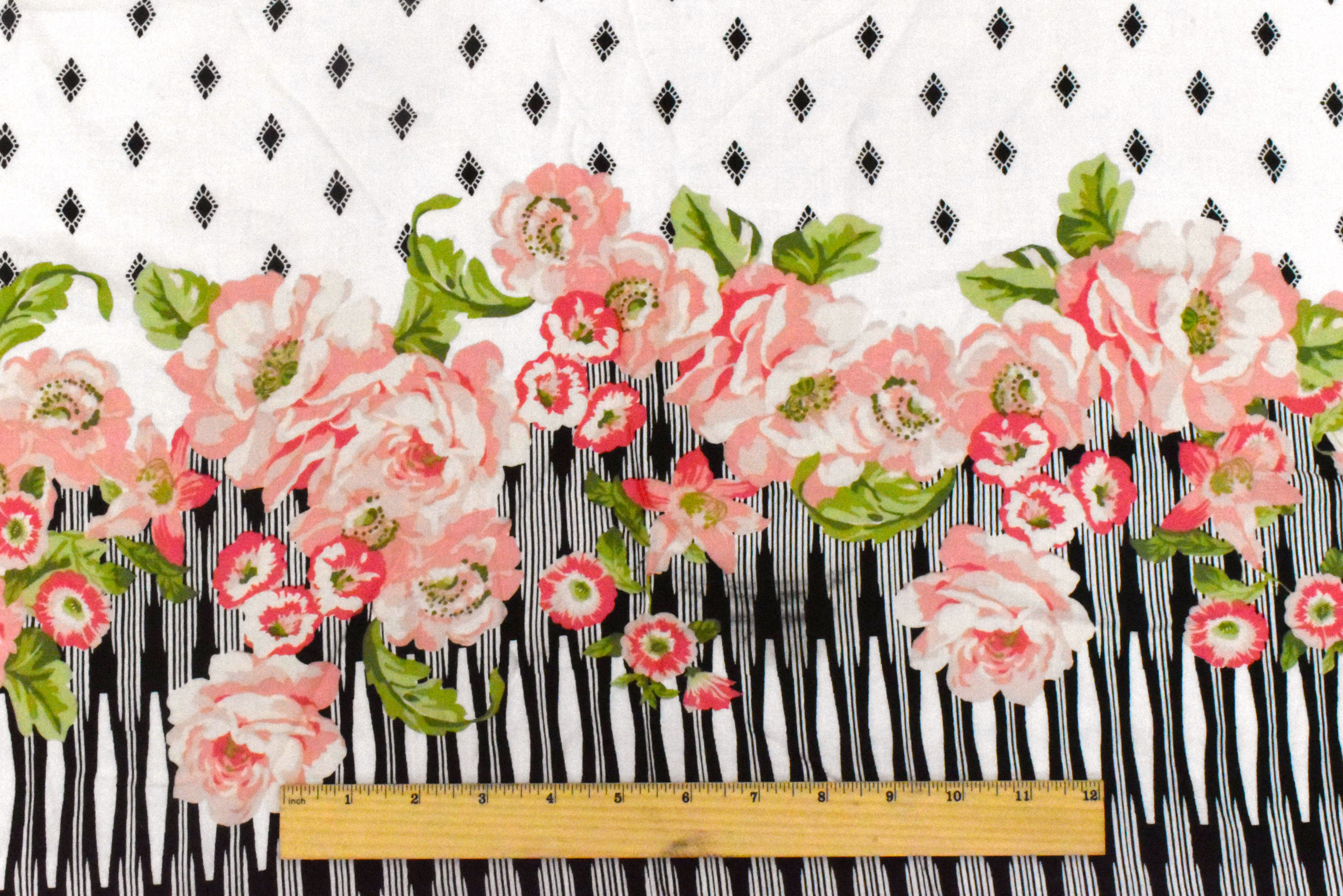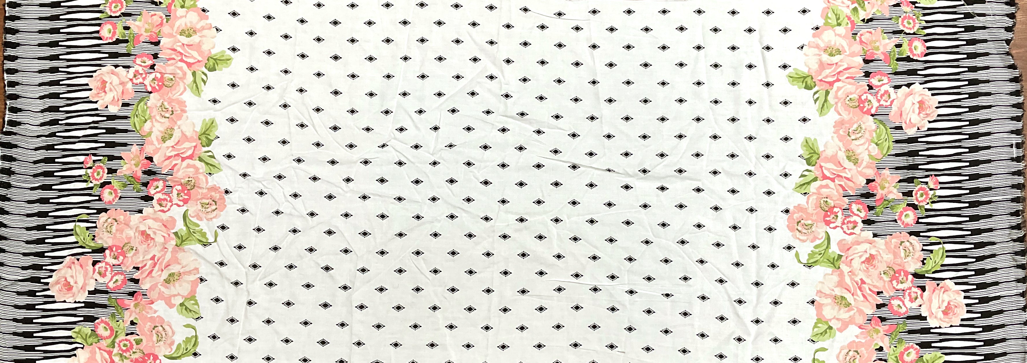3 1/2 YD PC -Floral border and diamond motifs printed on a challis woven fabric