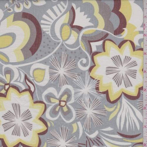 3 1/8 YD PC-Sterling/Yellow Floral Print Silk Voile Fabric