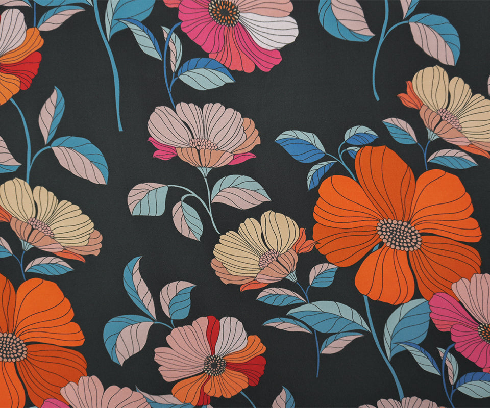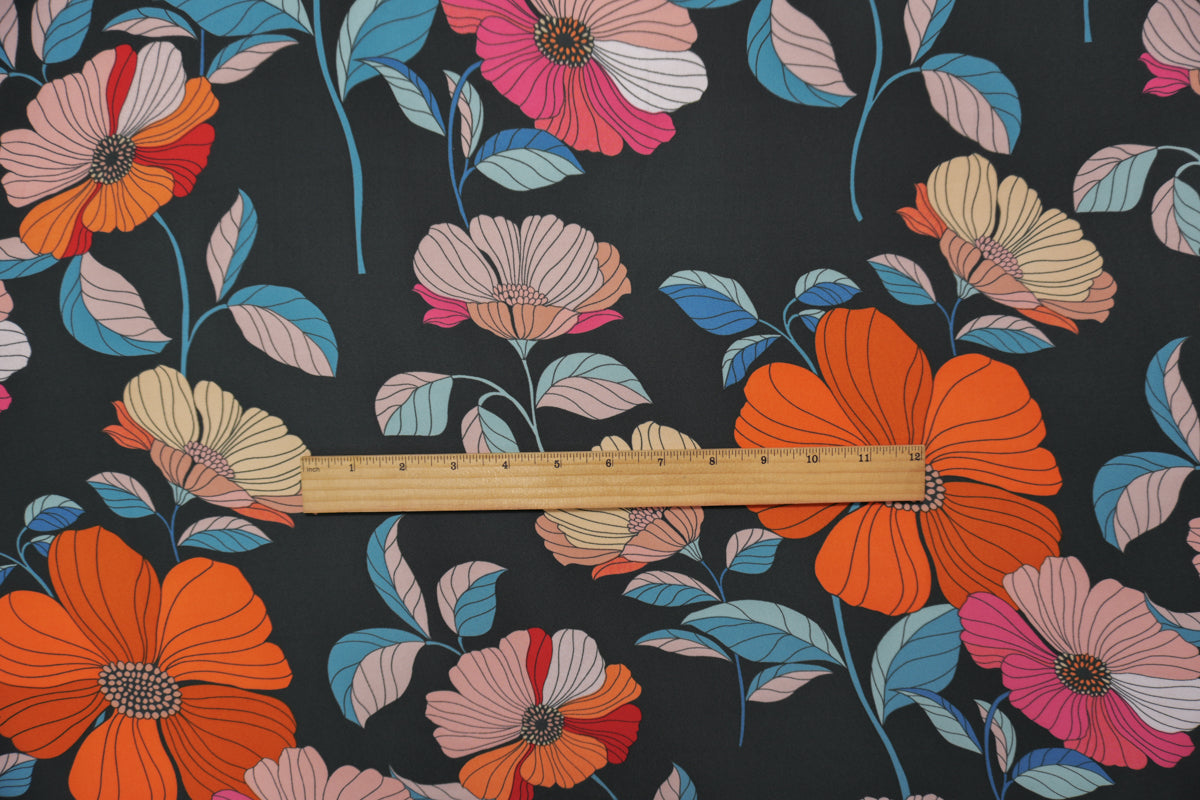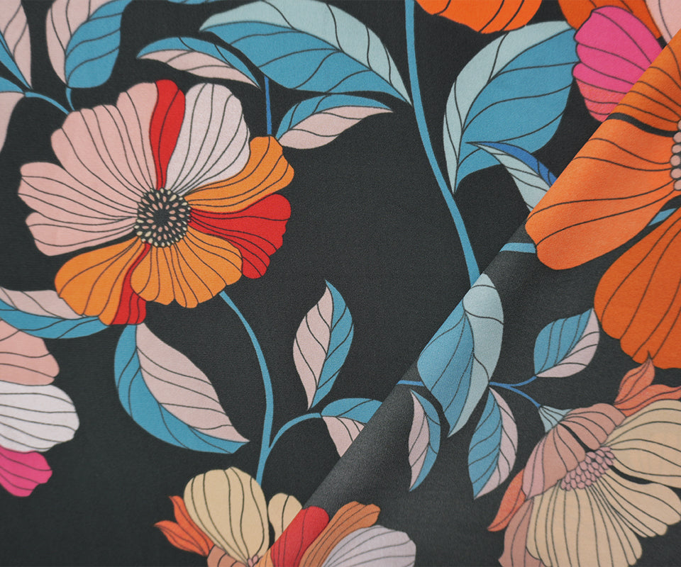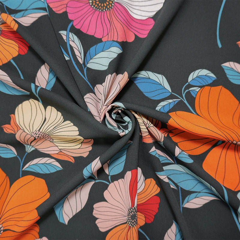 Black-Pink-Multi Poly Floral Printed Georgette Woven Fabric