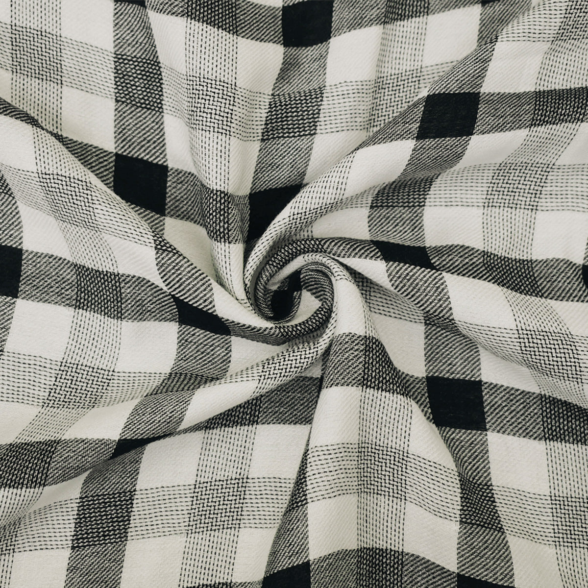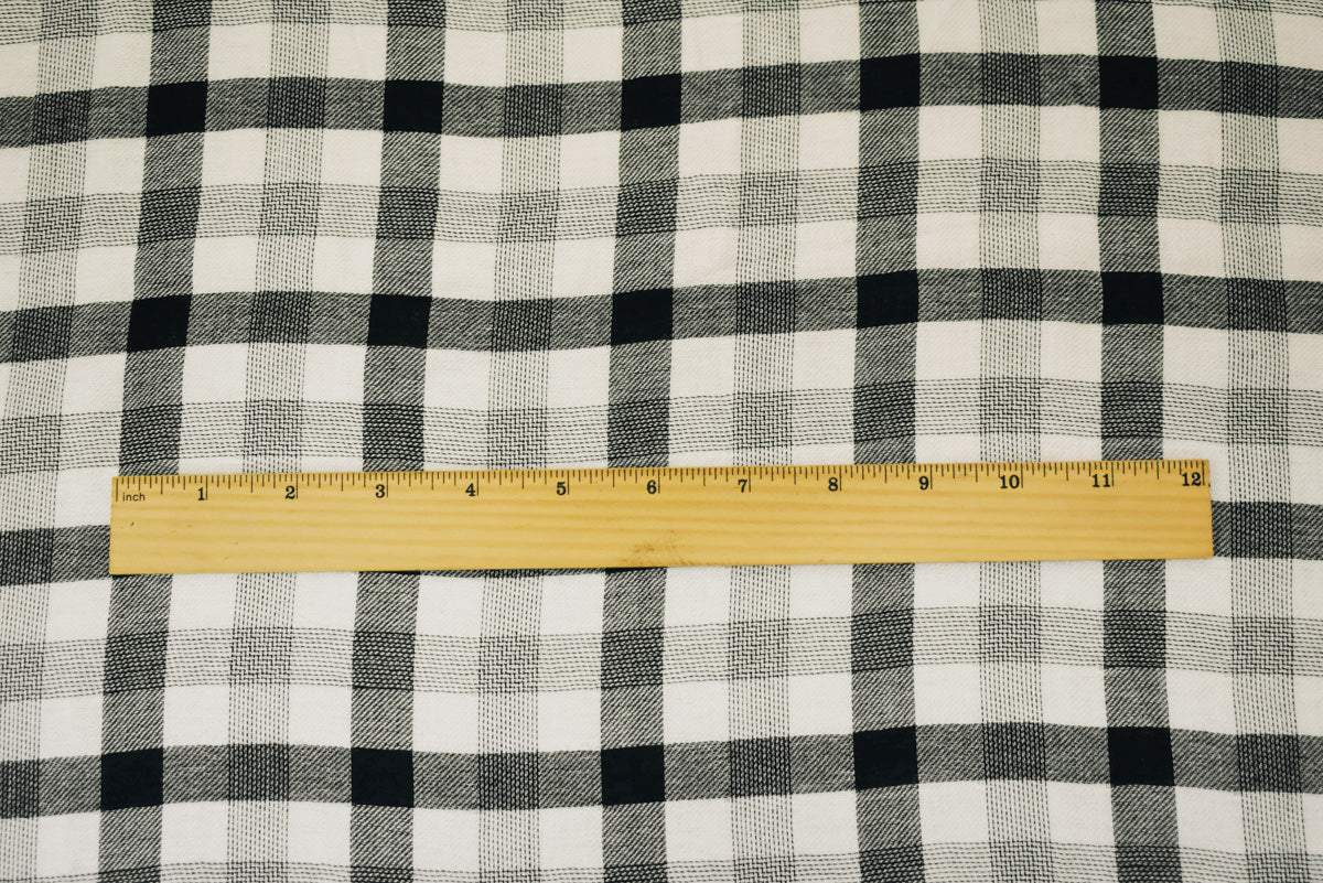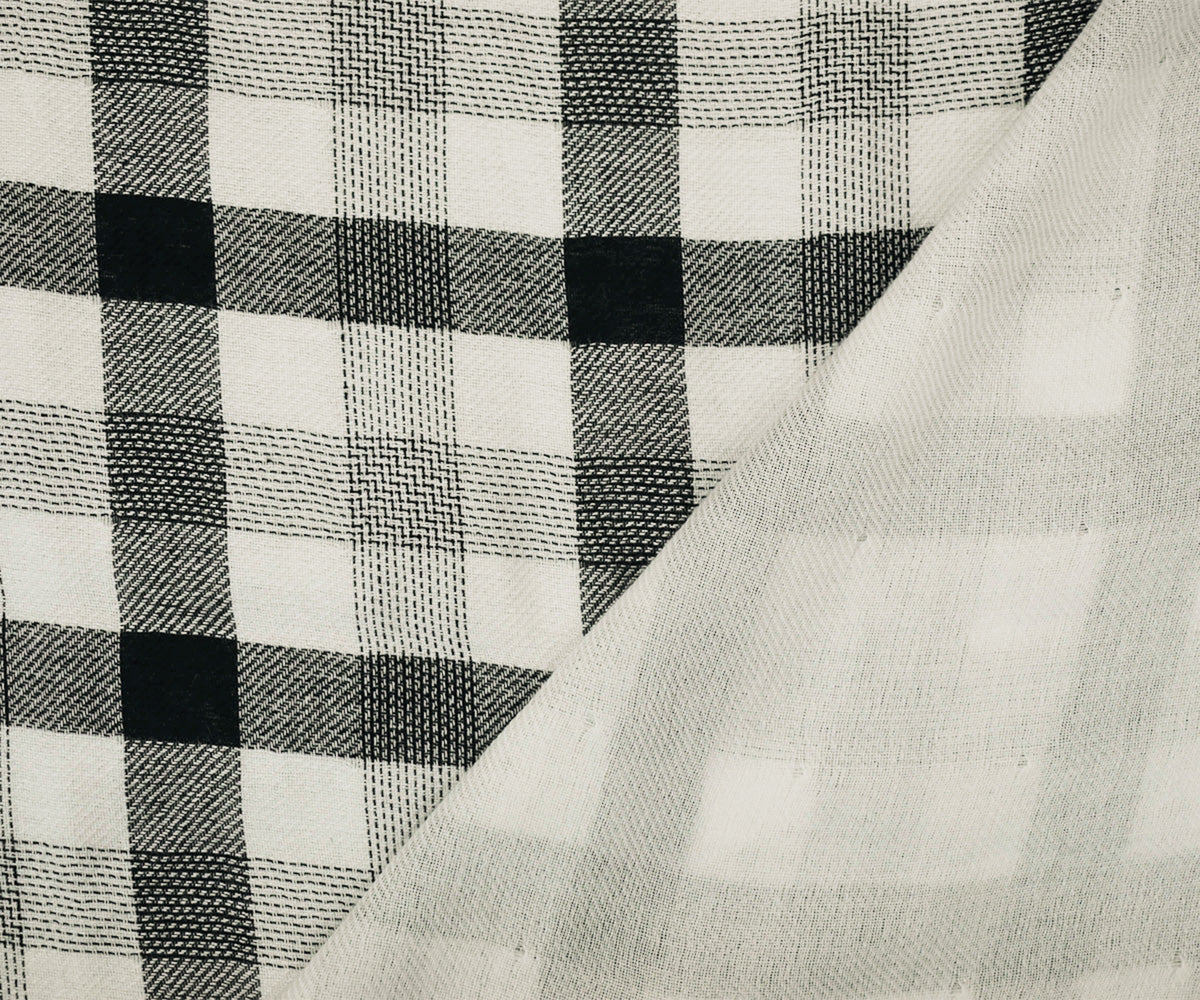 Black-White Famous Maker Cotton Plaid-Check Double Gauze Twill Woven Fabric