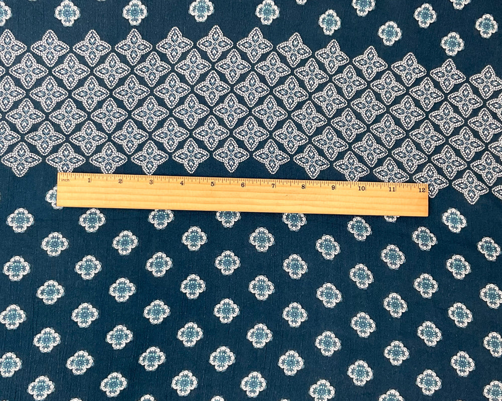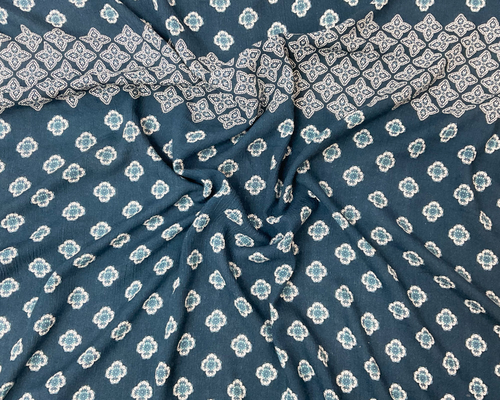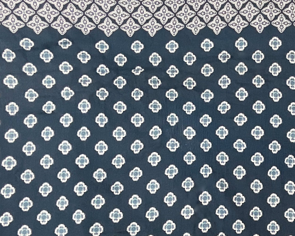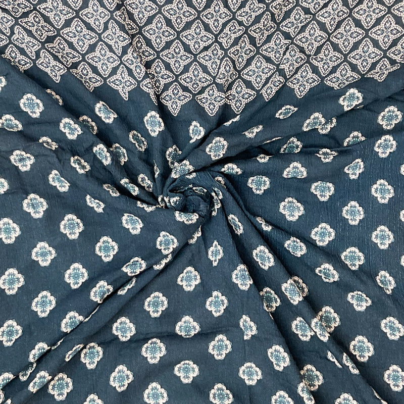 Blue-White Cotton Floral Border Printed Gauze Woven Fabric