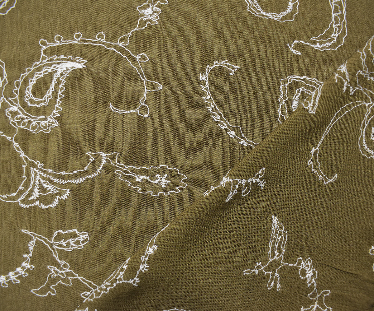 Brown Cotton Paisley Vine Embroidered Crinkled Gauze Woven Fabric